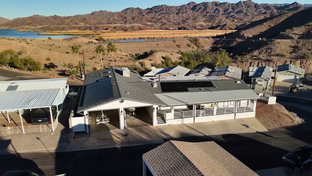Investment Opportunity. Newly Remodeled Hillcrest Bay Gem with RV Garages & Guest Apartment! Discover the perfect river getaway in the highly sought-after Hillcrest Bay community, ideally located between Parker and Lake Havasu. This beautifully updated home is short-term rental friendly and designed with both comfort and convenience in mind. The main residence features a spacious layout, a brand-new roof, and owned solar for energy savings. For those with toys, you'll love the RV garage plus an