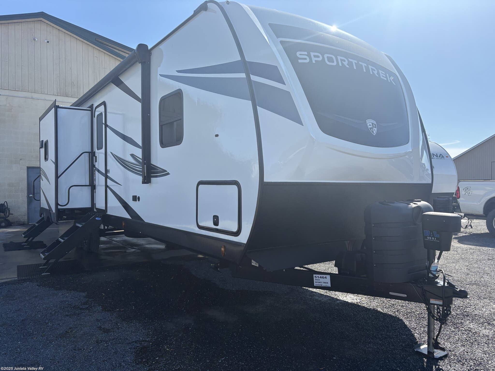 Stock #60164 - Venture RV SportTrek 333VIK Travel Trailer A Spacious Bunkhouse Towable RV for Family AdventuresDiscover the Venture RV SportTrek 333VIK, a 2024 travel trailer designed to maximize comfort, storage, and versatility in a family-friendly bunkhouse layout. This 37 feet 8 inches long recreational vehicle delivers a home-like experience on the road with a thoughtfully designed floorplan that includes a front bedroom, bath and a half, and a bunkhouse. With 3 slide-outs, two entry doors